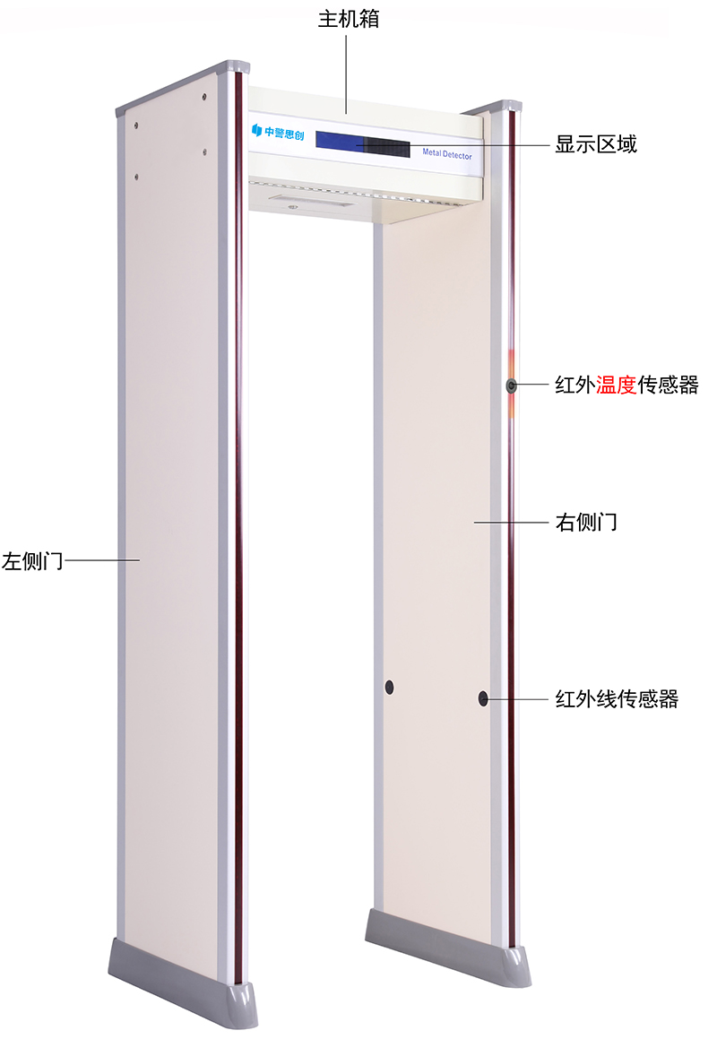 中警思創(chuàng)ZJSC-P10測溫通過式金屬探測安檢門:將紅外測溫與通過式金屬探測安檢門融合,通過金屬安檢門前,先進行紅外人體測溫,聲音報警,提示體溫異常,有效防止規(guī)模性疾病傳染;