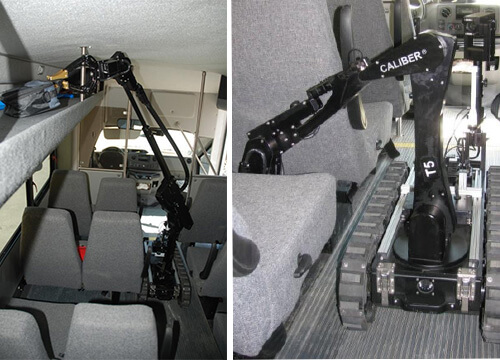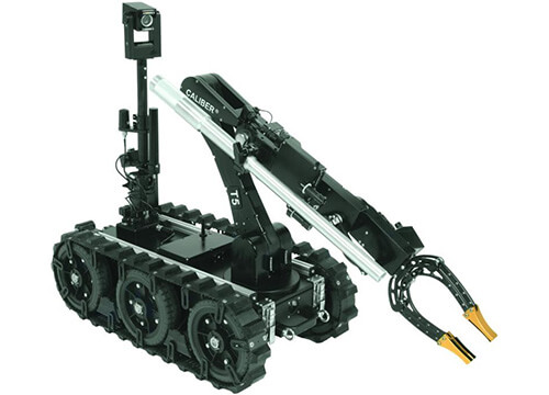 ●機(jī)動(dòng)性:T5 機(jī)器人寬度僅為 44cm,特別適合排爆及特警在狹小空間內(nèi)進(jìn)行排爆工作。重量只有 64kg,可以放在車輛后備箱中運(yùn)輸。加長臂伸展長度為 267cm,可抓取機(jī)艙或車廂行李架上的任何可疑物。●武器系統(tǒng):T5 機(jī)器人配有單路水泡槍底座,可以與目前世界絕大多數(shù)無后座力水泡槍配合使用。同時(shí),也可加載 Benelli M4 散彈槍。配有兩組激光瞄準(zhǔn)器,通過CCU 單元操控的四路獨(dú)立的開火裝置。同時(shí),可裝配便攜式 X 光機(jī)。