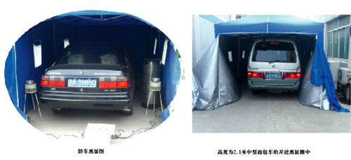 功能之二:車棚內(nèi)固定的頂棚與熏顯器配套可熏顯汽車等大型物件客體