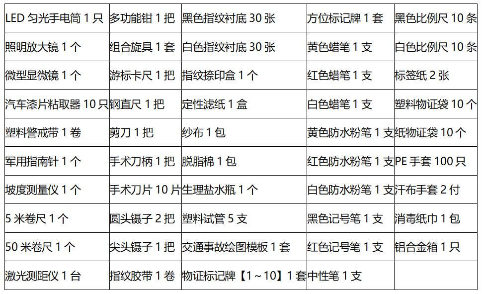該勘查箱主要用于交通事故現場的測量、繪圖,以及相關物證的發現、提取和保存等工作。借助坡度測量儀和激光測距儀,使得現場測量與繪圖工作變得更加輕松自如。該箱還配備了高亮度LED勻光手電筒,為夜間的勘查工作提供照明。